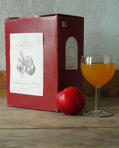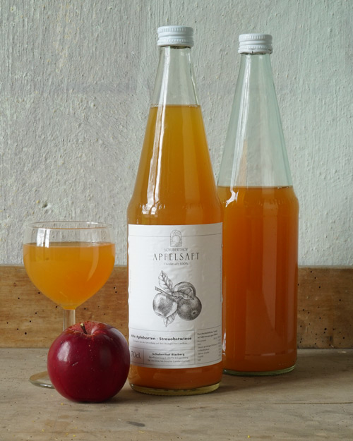 Charaktervoller, fruchtiger Apfelsaft aus alten Apfelsorten, handgelesen.